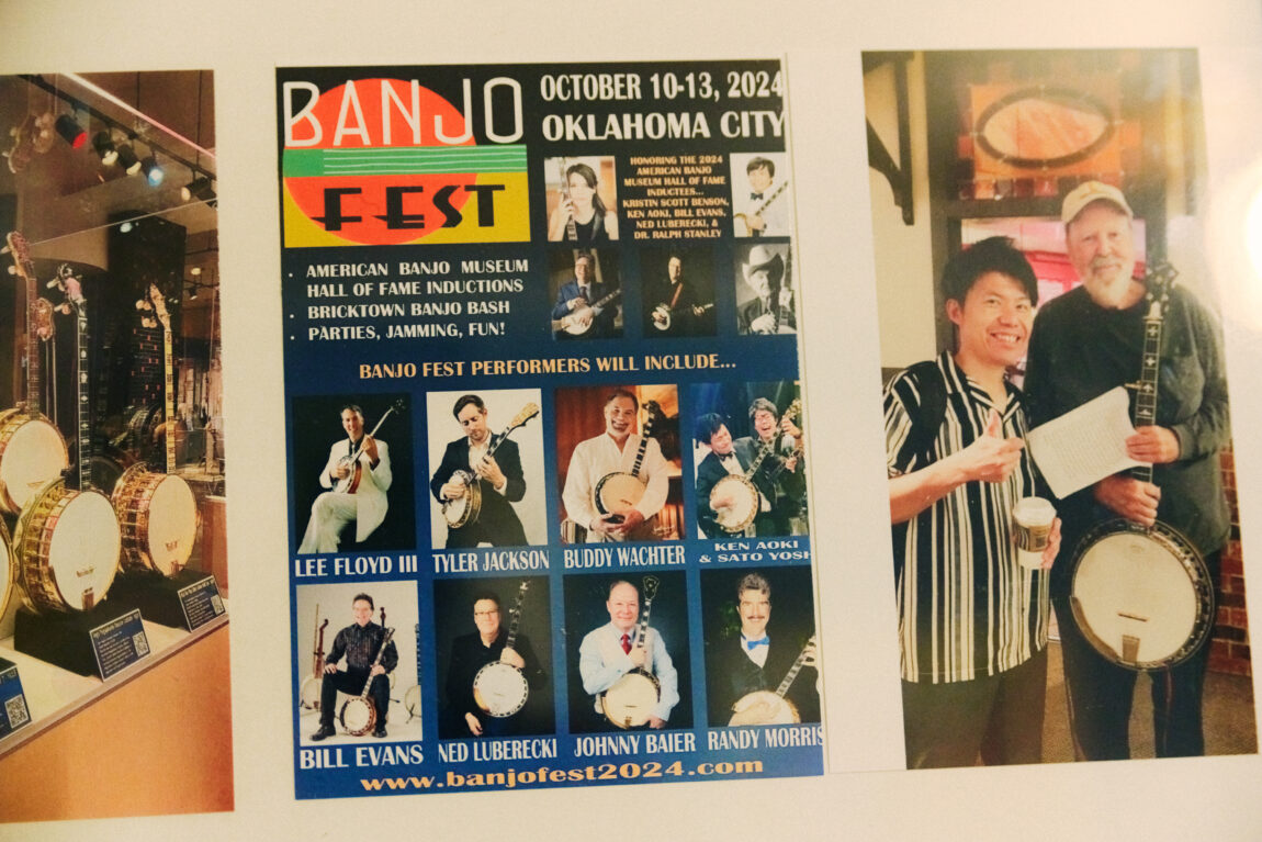 Professional banjo players are rare in Japan. If I hear a banjo in a TV commercial, I can usually tell exactly who is playing. In 2024, my former teacher, Mr. Aoki, was inducted into the Banjo Hall of Fame in Oklahoma, and I had the honor of performing alongside him. While I spend much of my time performing and arranging music, I also run a music school here in Toride.